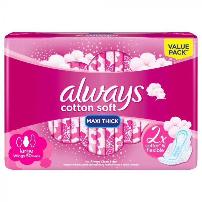 Always Feminine Pads Cottin Soft Maxi Thick Large With Wings – 50 Pcs